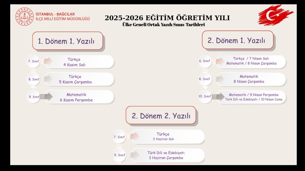 2025-2026 Eğitim Öğretim Yılı Ülke Geneli Ortak Yazılı Sınavları Takvimi